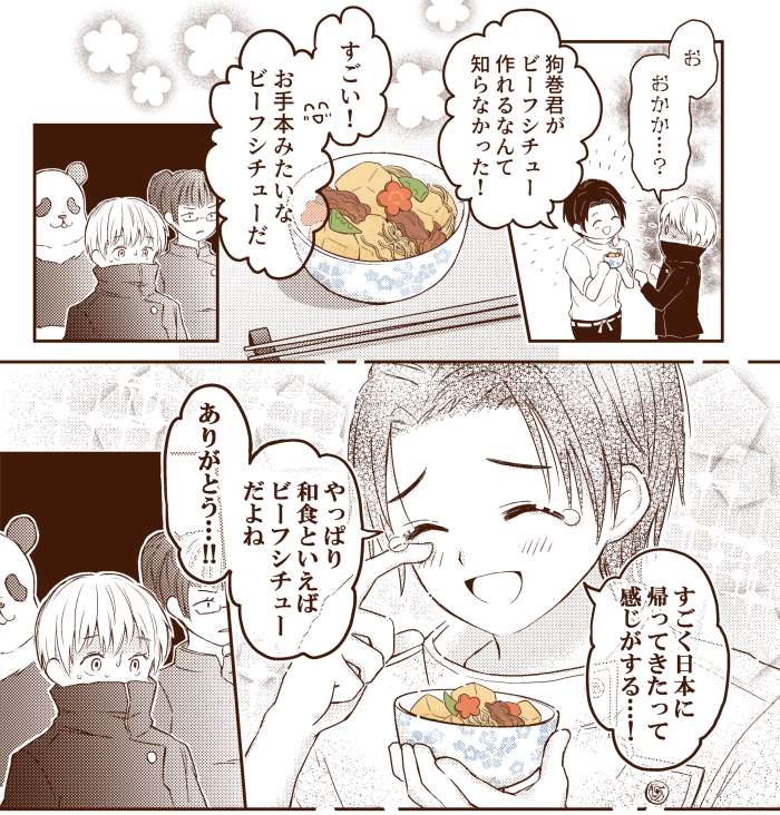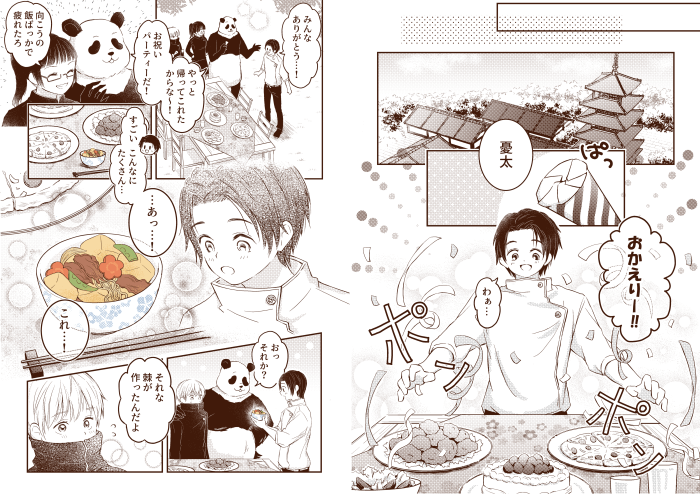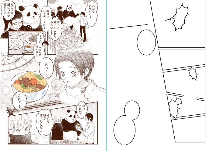今回、持ち込みする漫画は、2024年1月に描いた乙骨くんのビーフシチュー漫画と、2024年9月発行のパークレ合同誌に寄稿した漫画(2本のうちの1本、14P)にしました。