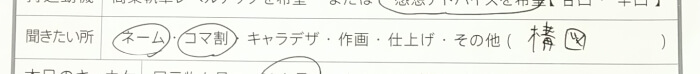 聞きたい所は、正直全部なんですが、それもウゼーか…😂と思い、とりあえずネームとコマ割につけました。